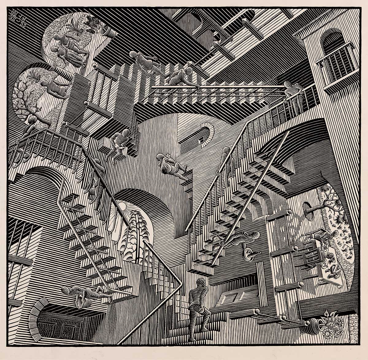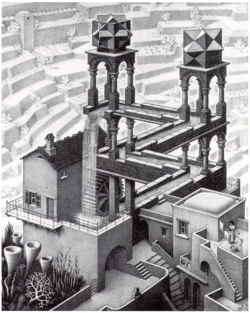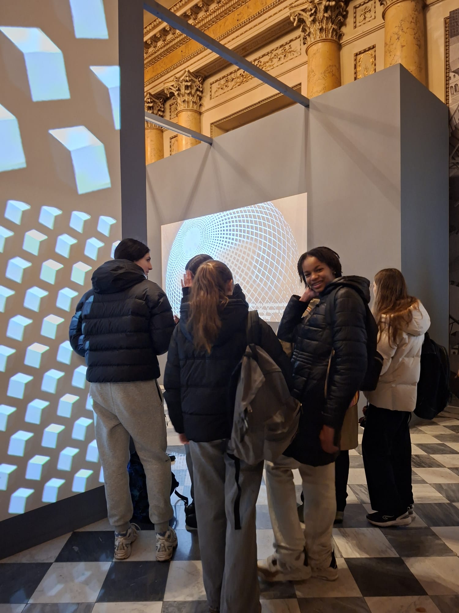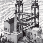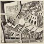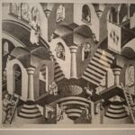 Maurits Cornelis Escher (1898-1972) est un artiste néerlandais connu pour ses gravures sur bois et lithographies souvent inspirées des mathématiques. Ses œuvres emblématiques représentent des constructions impossibles, des explorations de l’infini, des pavages mettant en jeu des symétries, des translations, des rotations et des combinaisons de motifs en deux ou trois dimensions se transformant graduellement en des formes totalement différentes, défiant les modes habituels de représentation du spectateur. Les élèves ont pu visiter les salles de l’infini ou de la relativité ou encore s’immerger dans la galerie d’estampes. Une expérience à la fois visuelle et émotionnelle.