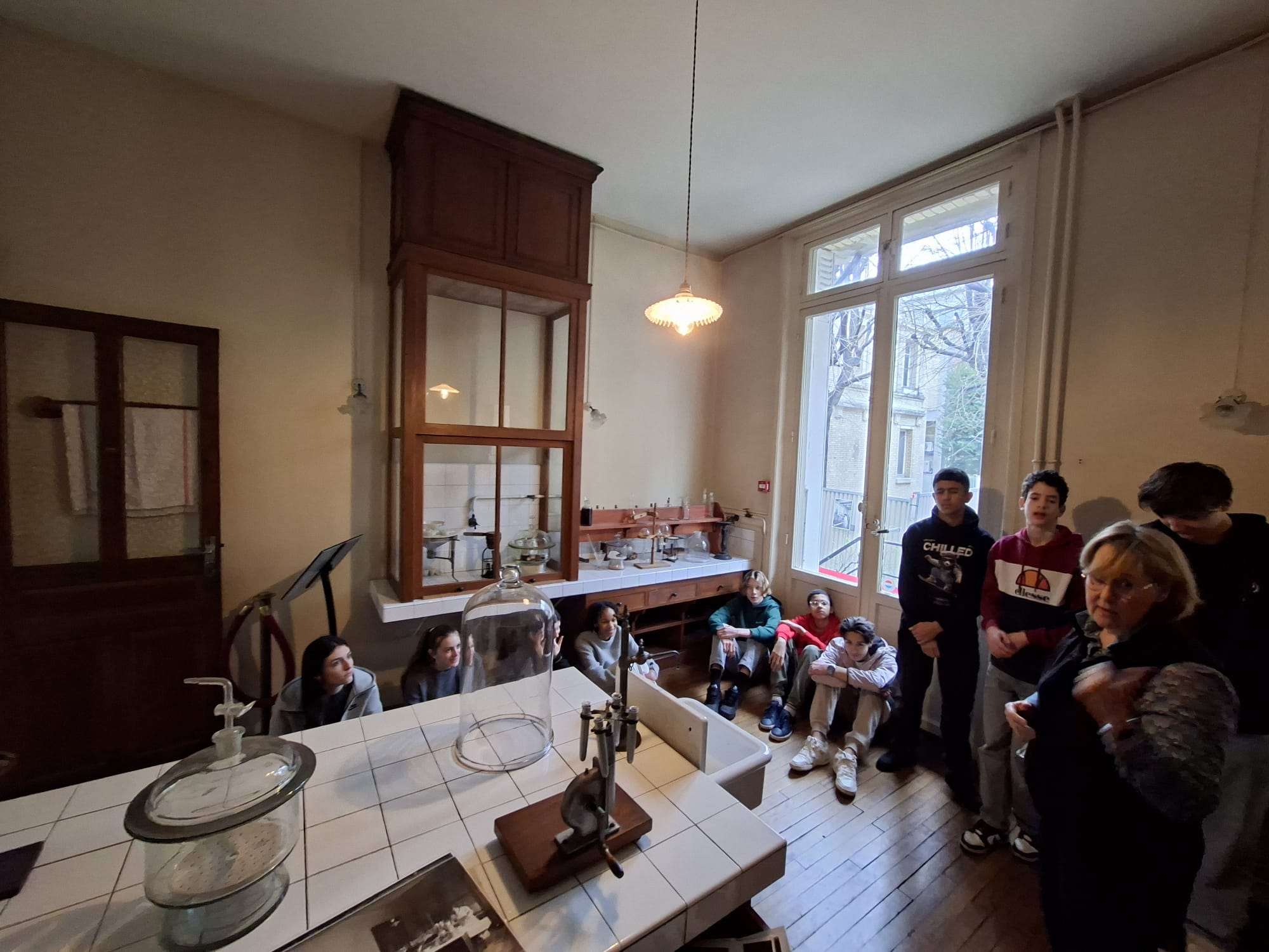 Les élèves de 3ème option « Des Métiers et des Sciences » se sont rendus à Paris au Musée Marie Curie afin de découvrir cette femme d’exception et cette famille aux cinq prix Nobel . Dans la continuité du 11 février, Journée internationale des femmes et des filles de Science, nous avons pu découvrir, dans l’institut du radium, le laboratoire de Marie Curie resté intact. Elle y a consacré beaucoup de temps au travers de travaux délicats de chimie entre 1915 et 1934. Elle a fourni des efforts inlassables pour obtenir des matières radioactives rares, comme le radium et le polonium, qui ont servi à de nombreuses recherches menées au laboratoire Curie. Irène et Frédéric Joliot-Curie eux aussi y ont passé de nombreuses heures, se succédant au poste de préparateur personnel de la savante, puis comme directeurs de l’Institut du radium.