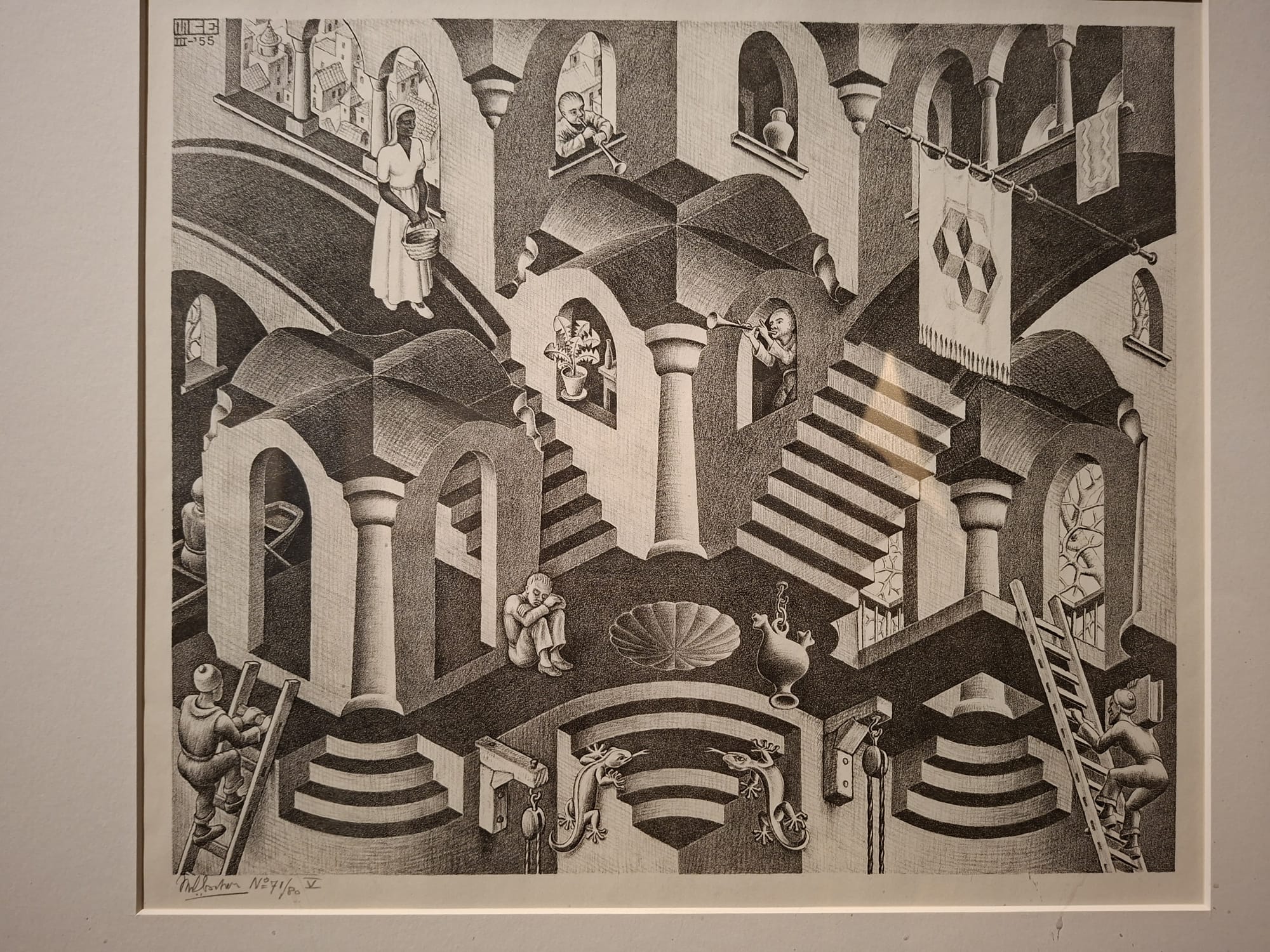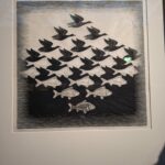 Après un déjeuner au jardin du Luxembourg, nous avons continué notre périple avec l’exposition M.C Escher au Musée de la Monnaie de Paris : Plus de 200 œuvres de M.C. Escher, où la logique rencontre le rêve et les mathématiques embrassent le paradoxe. L’exposition nous a conduit dans un voyage à travers des perspectives impossibles, des métamorphoses continues et des mondes défiant la réalité.