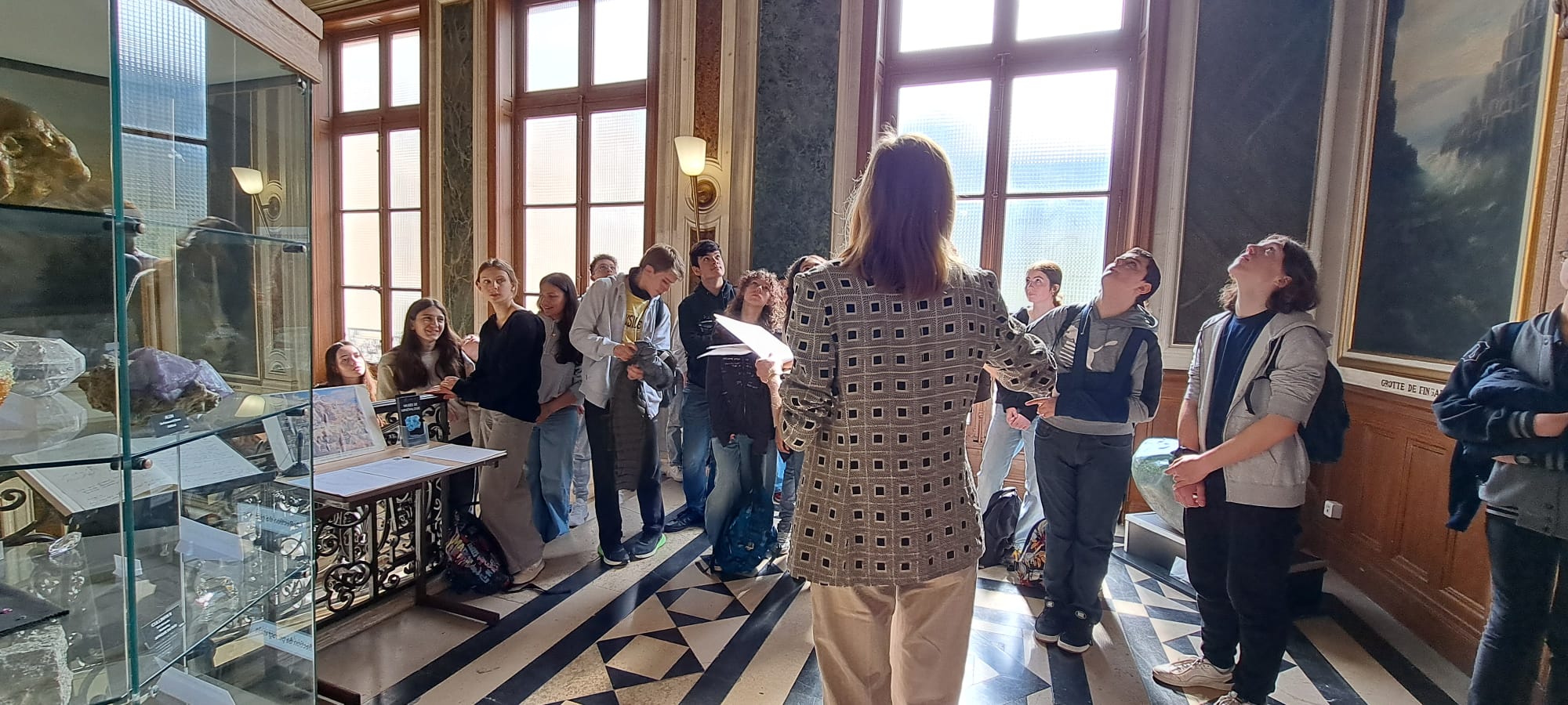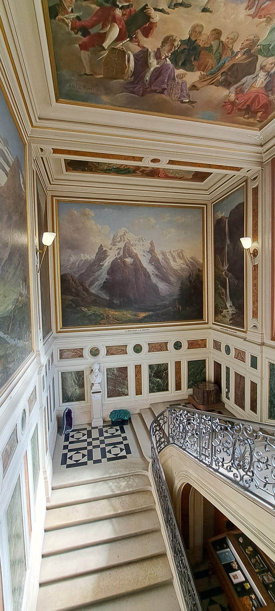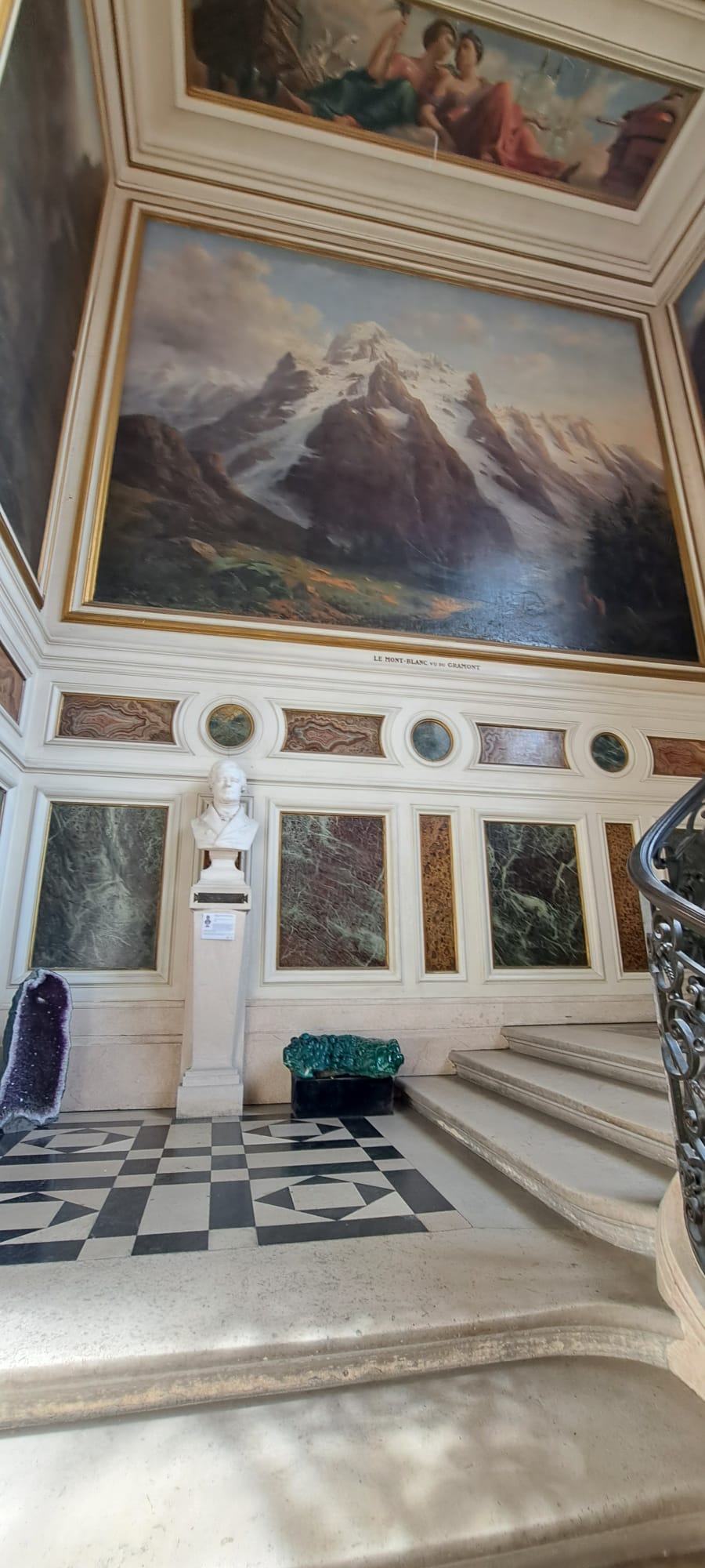 Nous étions ensuite conviés à visiter le Musée de Minéralogie de l’école des Mines. Pour y arriver nous avons pris le magnifique escalier riche en histoire. Ces œuvres illustrent les missions et les domaines d’enseignement originaux de l’École.