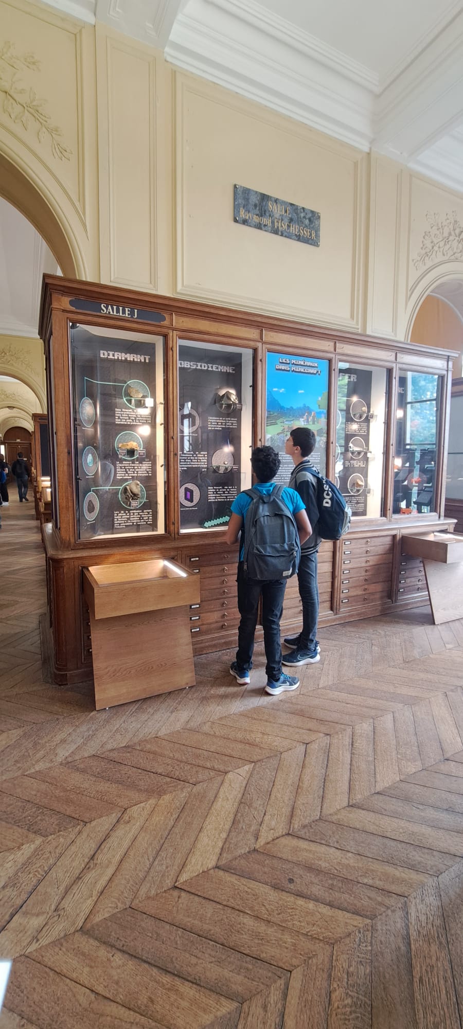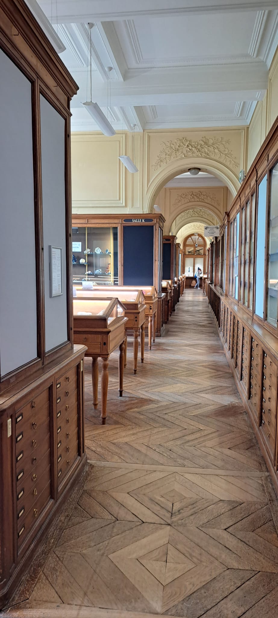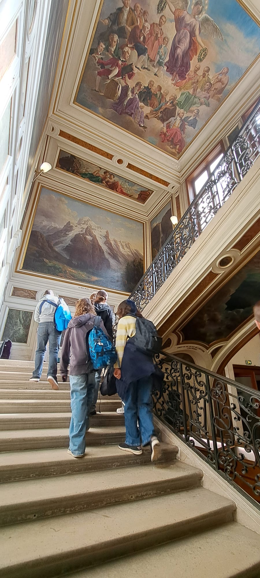 Nous étions ensuite conviés à visiter le Musée de Minéralogie de l’école des Mines. Pour y arriver nous avons pris le magnifique escalier riche en histoire. Ces œuvres illustrent les missions et les domaines d’enseignement originaux de l’École.