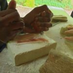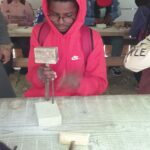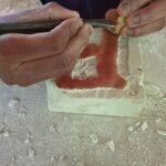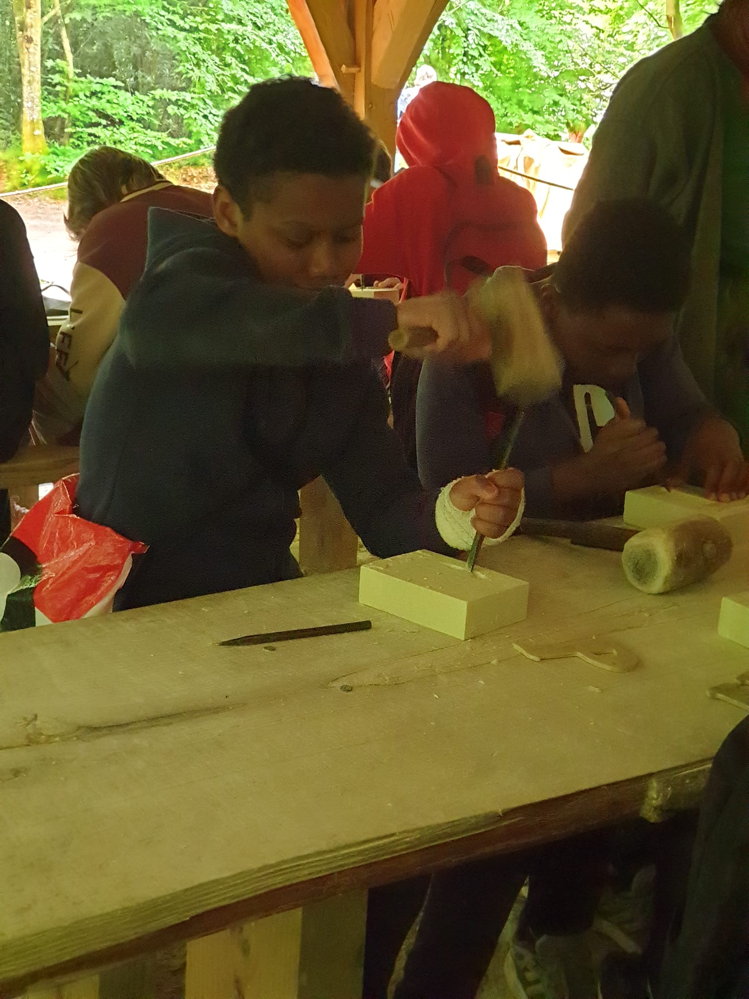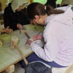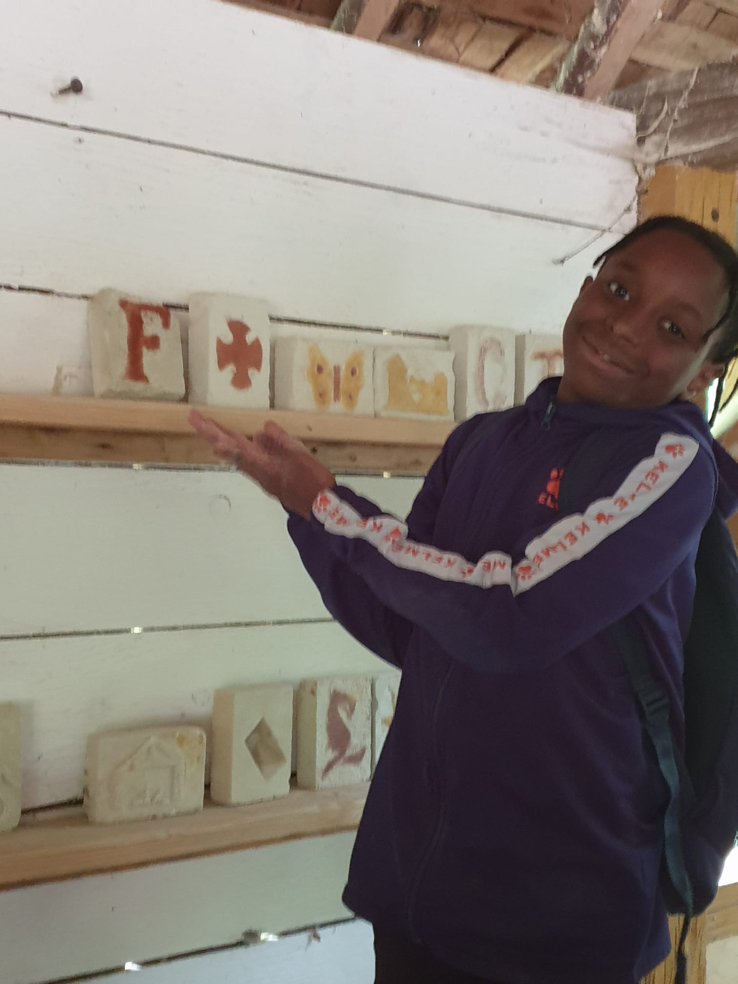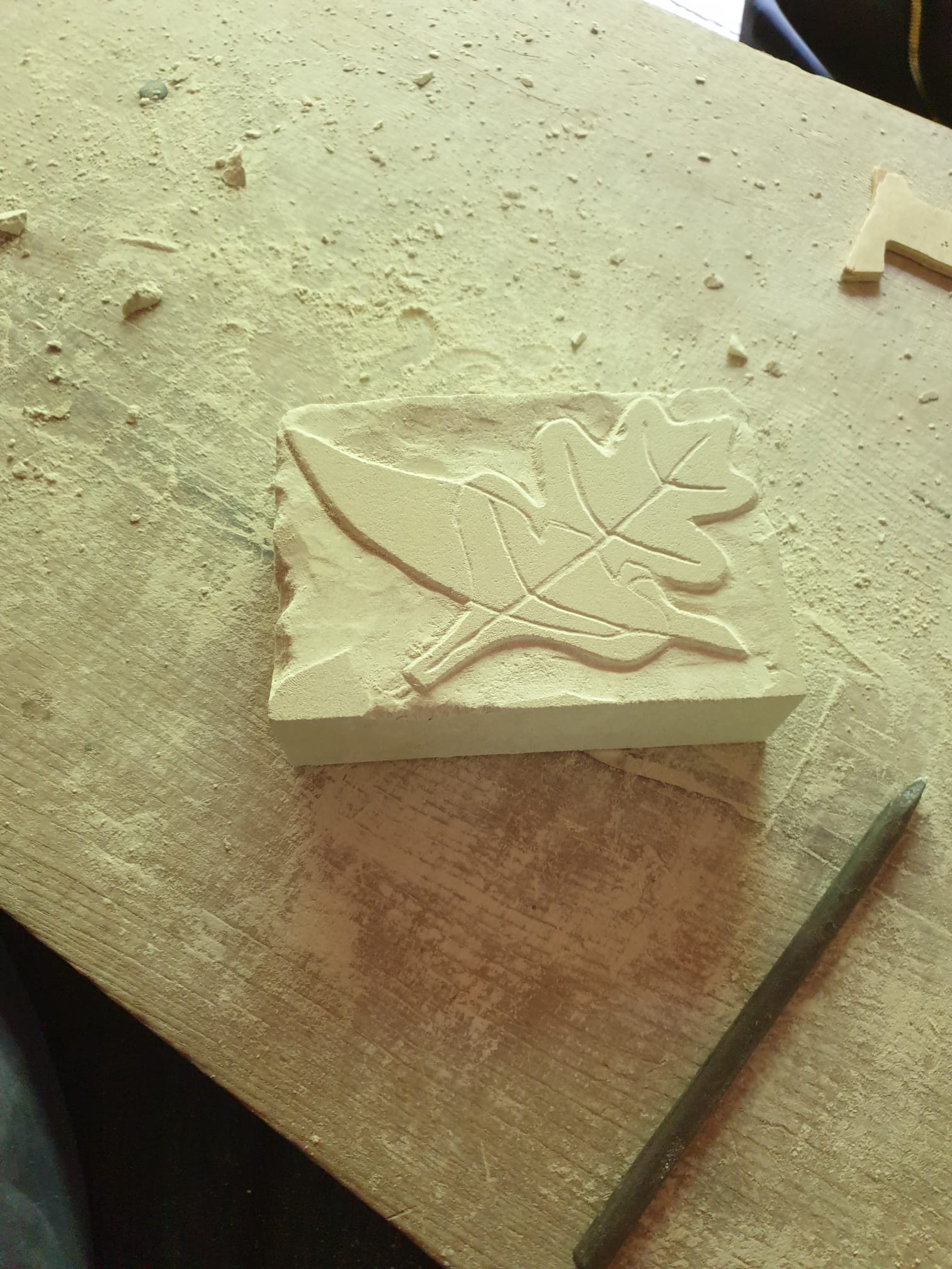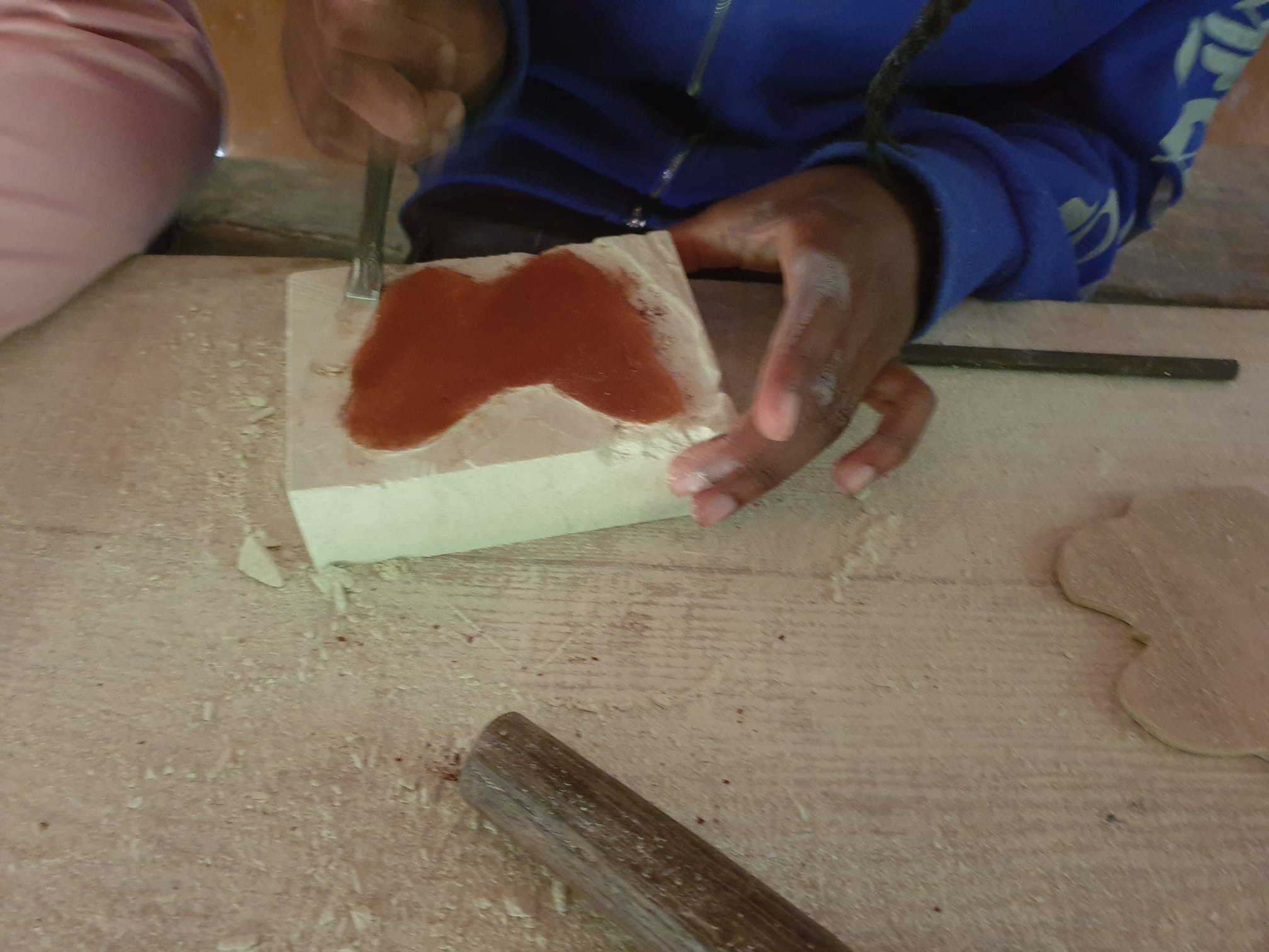 Le premier temps fort de la journée fut la participation à un atelier de taille de pierre, appelé tuffeau. Encadrés par une artisane spécialisée, les élèves se sont initiés aux gestes précis du tailleur de pierre. Munis d’outils traditionnels (pointe, ciseau, marteau), ils ont appris à tracer, sculpter et façonner un motif sur un bloc de calcaire tendre, découvrant ainsi la technicité et la créativité exigées par ce métier. Les plus avancés ont également coloré leur bas relief avec des pigments rochaux jaunes ou rouges, présents sur le site du château. Chacun a pu repartir avec sa propre sculpture, fièrement réalisée, en souvenir de cette expérience unique.