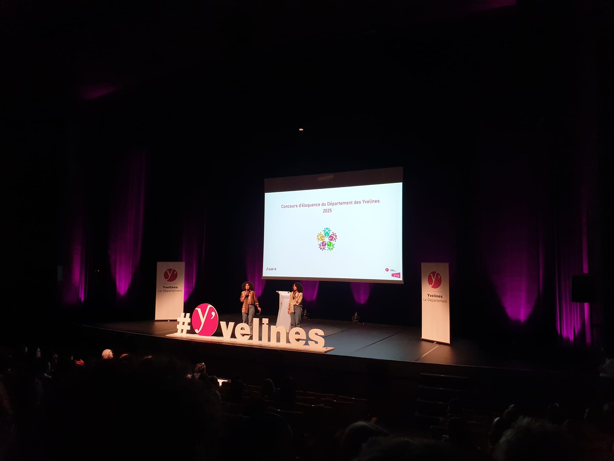 Le lundi 19 mai matin, le groupe s’est rendu au théâtre Coluche de la ville de Plaisir pour assister à la finale du concours. Entourée de ses camarades, Assiya a su tirer profit de tous les conseils reçus et a livré une prestation remarquable devant un public de 300 personnes. Son implication, sa persévérance et son entraînement ont été salués par l’ensemble du jury et du public.