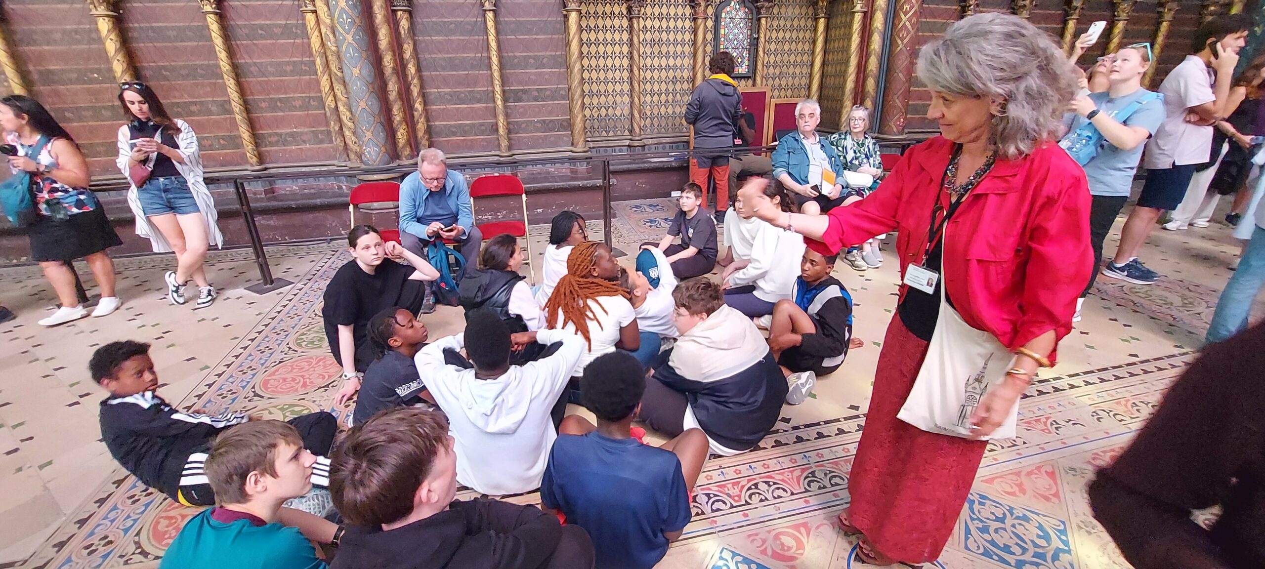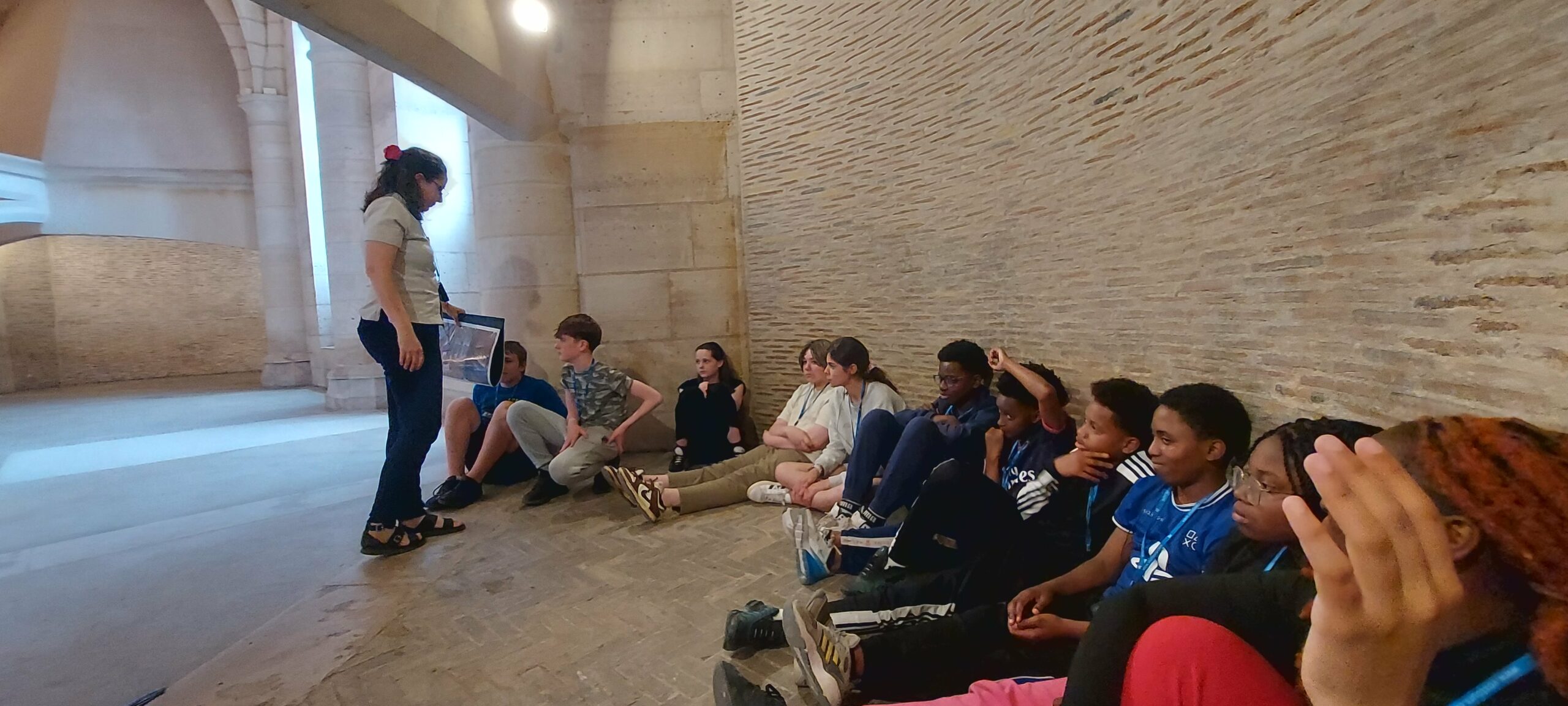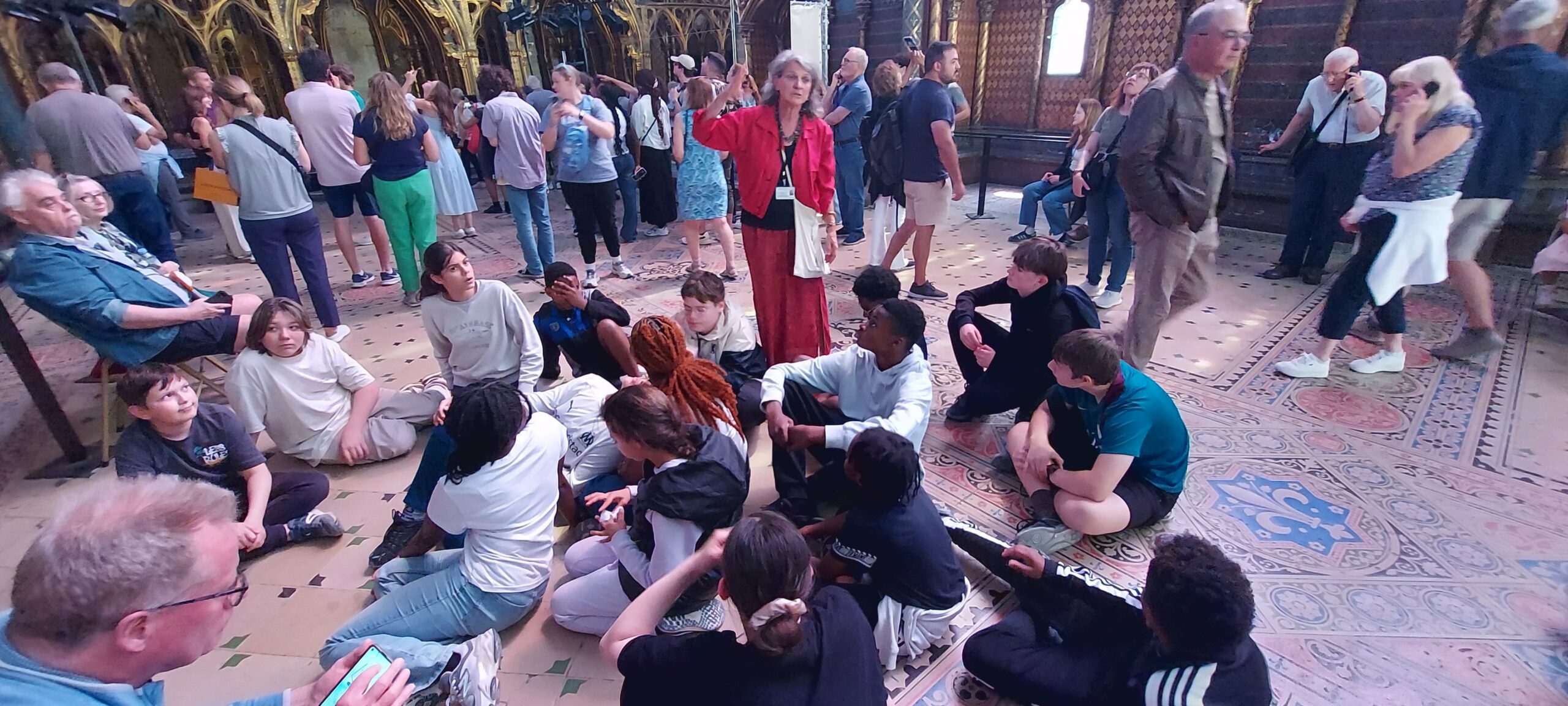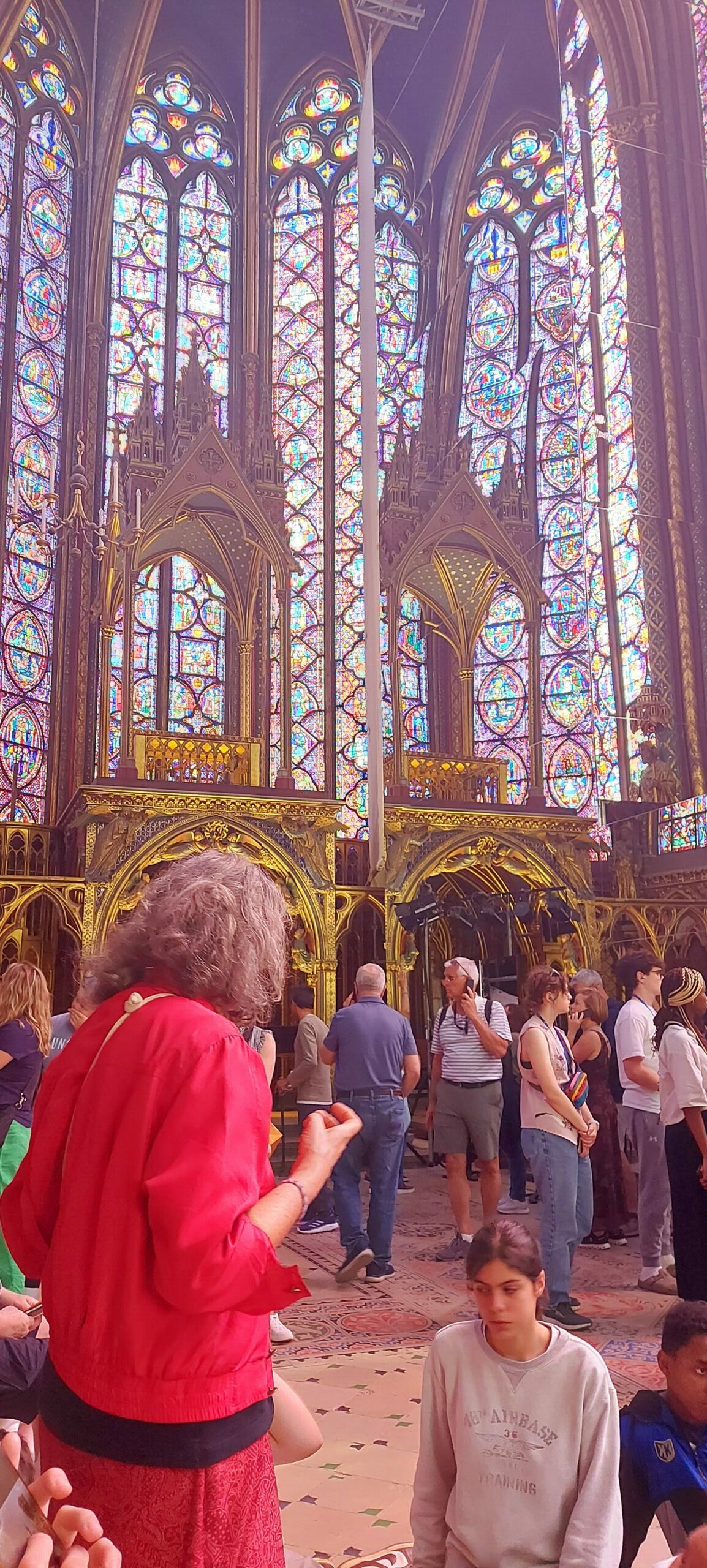Les élèves ont été émerveillés par l’architecture élancée et les 1 113 vitraux qui baignent la chapelle d’une lumière colorée. Alexandra a guidé le regard de chacun vers les détails des scènes bibliques, l’harmonie des couleurs et la prouesse technique de ces immenses verrières. Les élèves ont appris à décrypter le langage des couleurs et la symbolique médiévale.