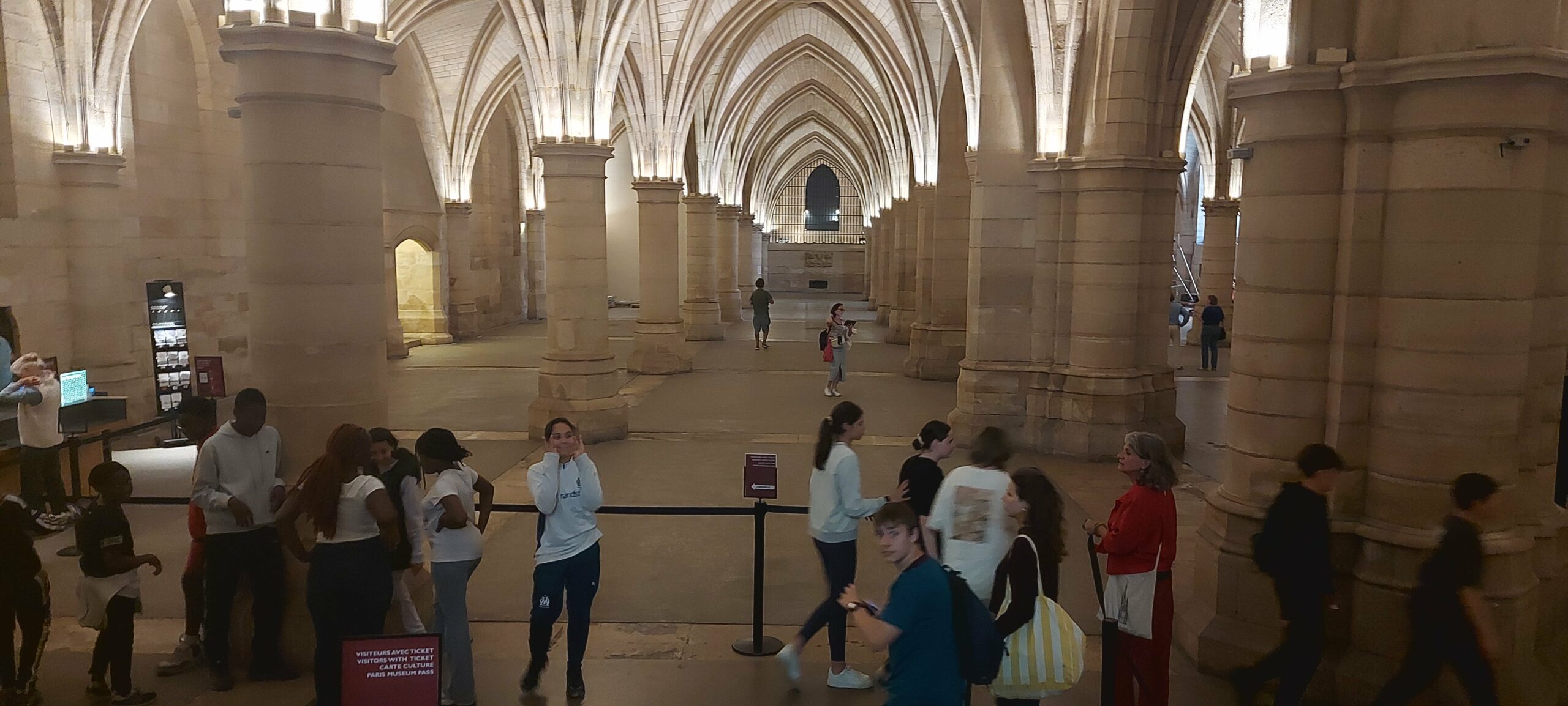 Quelques jours plus tard, direction la Conciergerie pour une immersion dans la vie quotidienne au temps de Charles V, dernier roi à avoir vécu dans ce palais médiéval. Guidés par Pauline, les élèves ont découvert la majestueuse salle des gens d’armes, vaste salle où vivaient quotidiennement les serviteurs du roi.