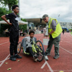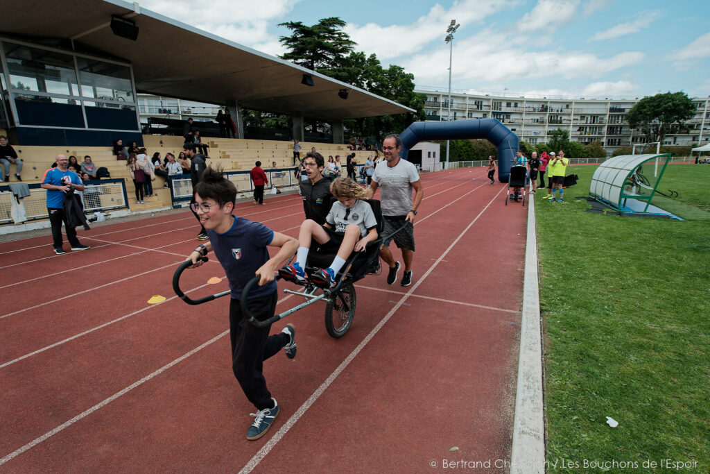 Au-delà de l’effort sportif, cette journée a été l’occasion pour nos élèves de se sensibiliser au handicap. Plusieurs ateliers leur ont permis de se mettre en situation : course en joëlette, fauteuil roulant ou hand-bike. Ils ont aussi eu la chance de rencontrer des sportifs handisport, dont Badr TOUZI, 7ème au lancer de poids lors des derniers Jeux Paralympiques de Paris, qui a partagé son expérience et sa passion.