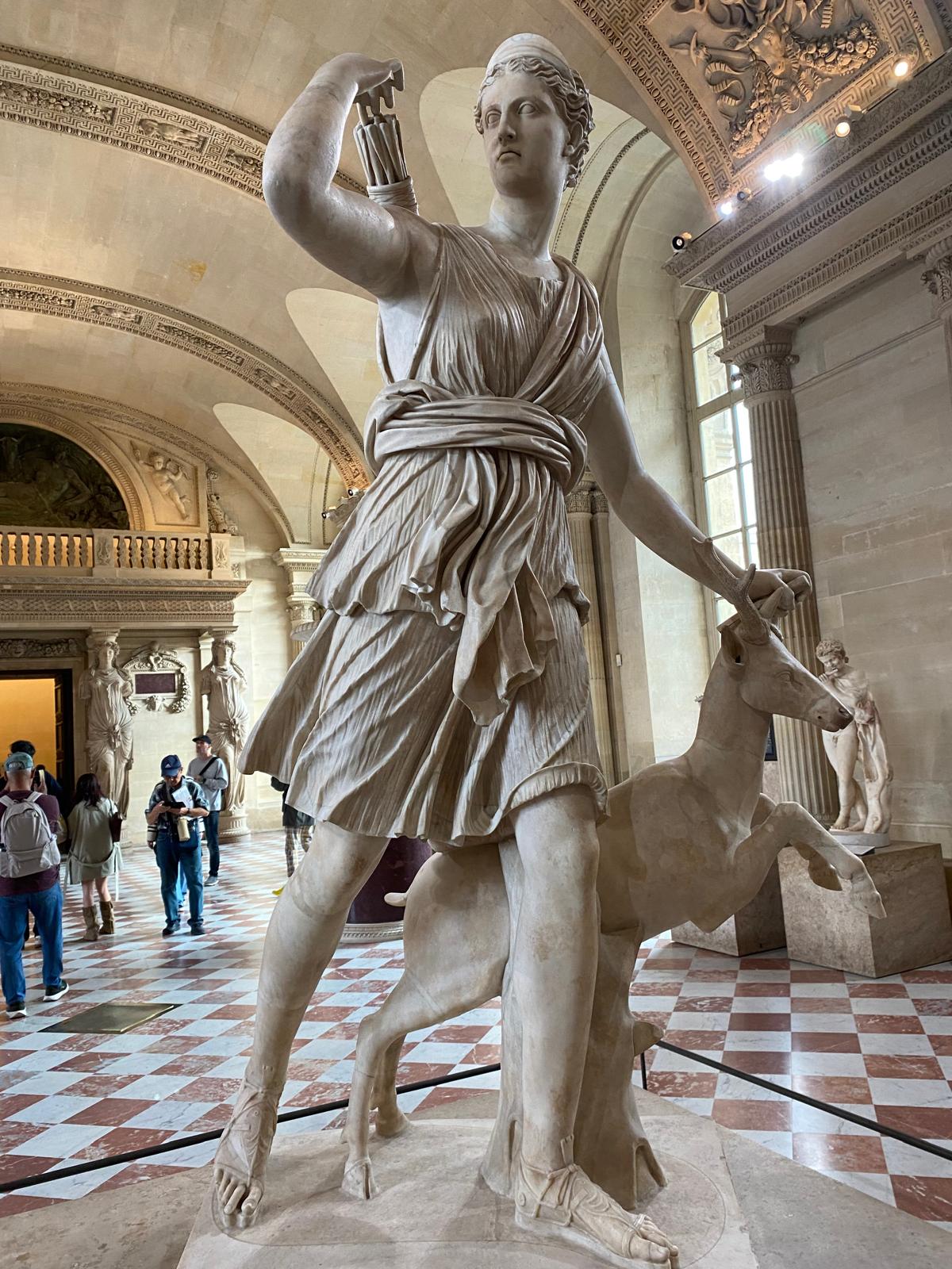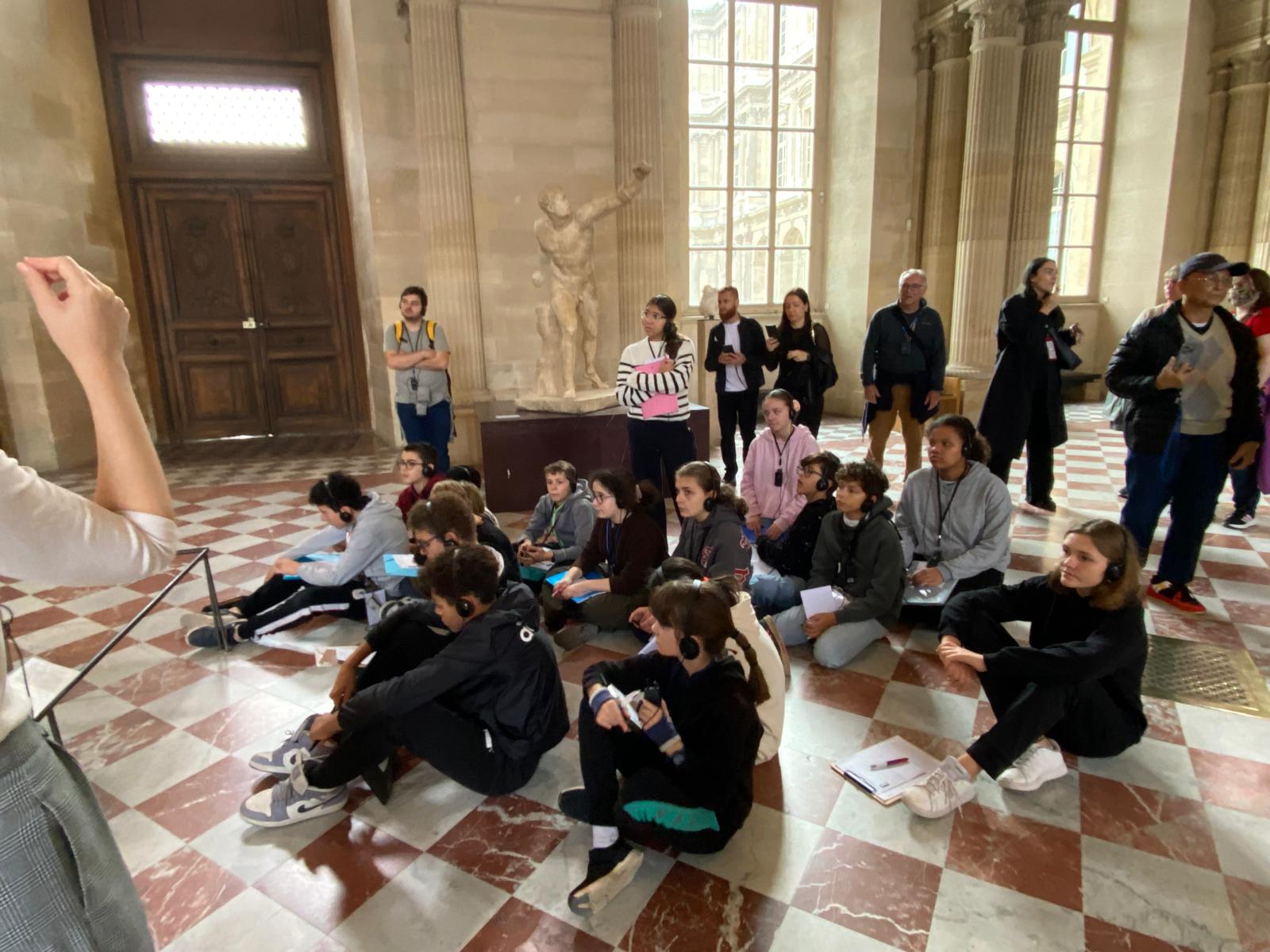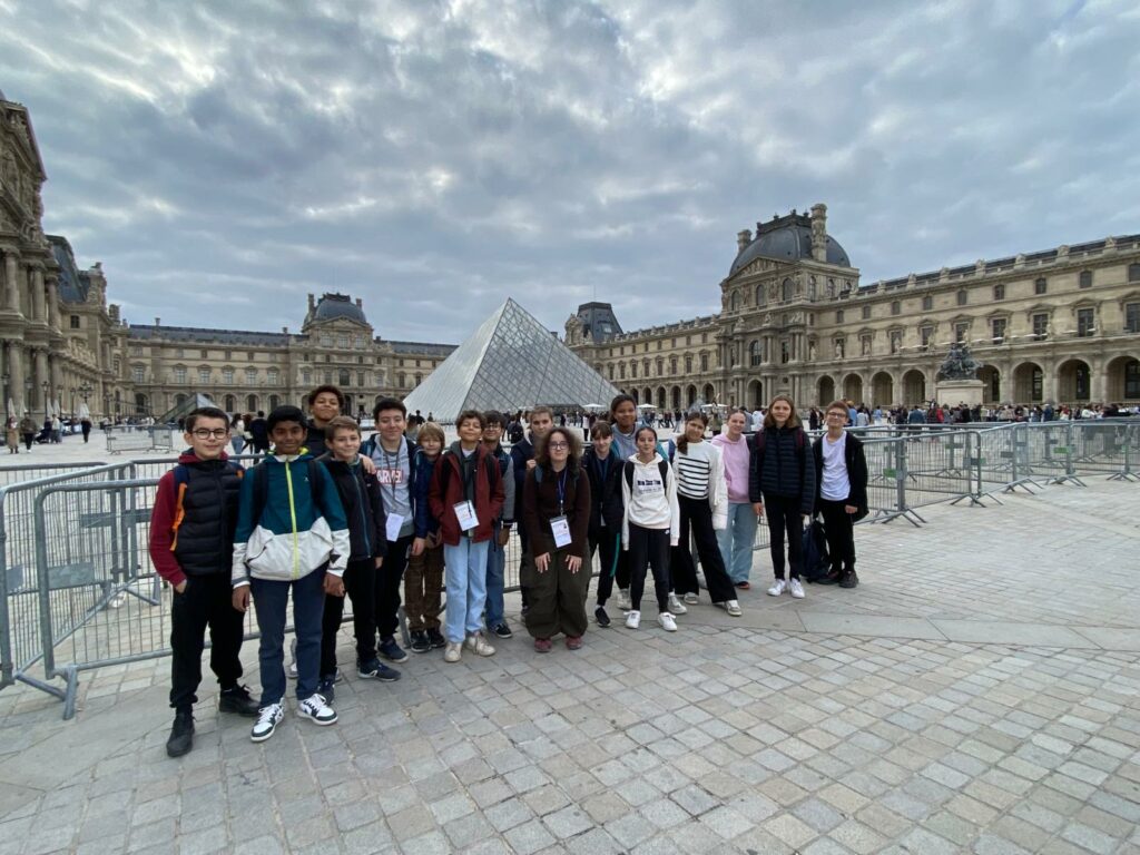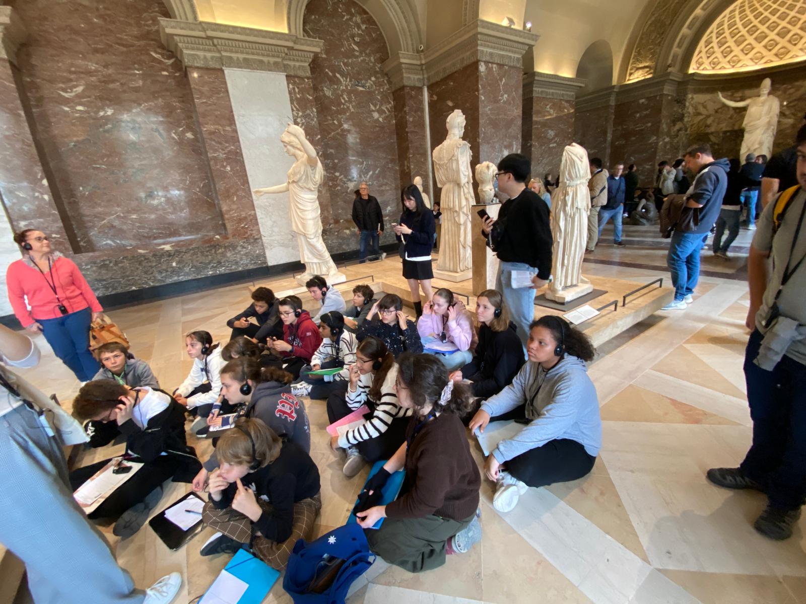La matinée a débuté au musée du Louvre, où les élèves ont visité les collections consacrées à la Grèce et à la Rome antique. Guidés par une conférencière passionnée, ils ont observé les représentations des dieux, déesses, demi-dieux et héros de la mythologie : Minerve, Diane, Athéna, Zeus, Hercule… Autant de figures familières qu’ils avaient déjà étudiées en classe au début de l’année. Cette mise en contexte a permis de relier les savoirs théoriques aux œuvres d’art grandeur nature, pour le plus grand plaisir de tous.