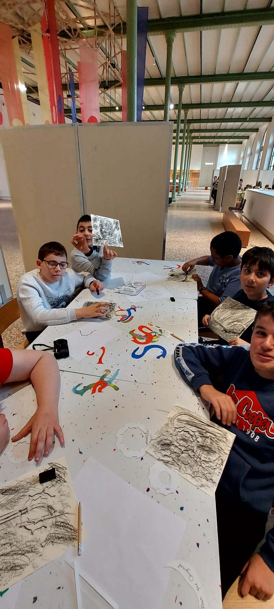 L’atelier de création a permis à chacun d’exprimer ce qui l’avait marqué lors de la visite, d’exprimer leur imaginaire, en s’inspirant des « formes éclatantes, des couleurs et des mécanismes » typiques des œuvres de Niki de Saint Phalle et des machines de Tinguely.
