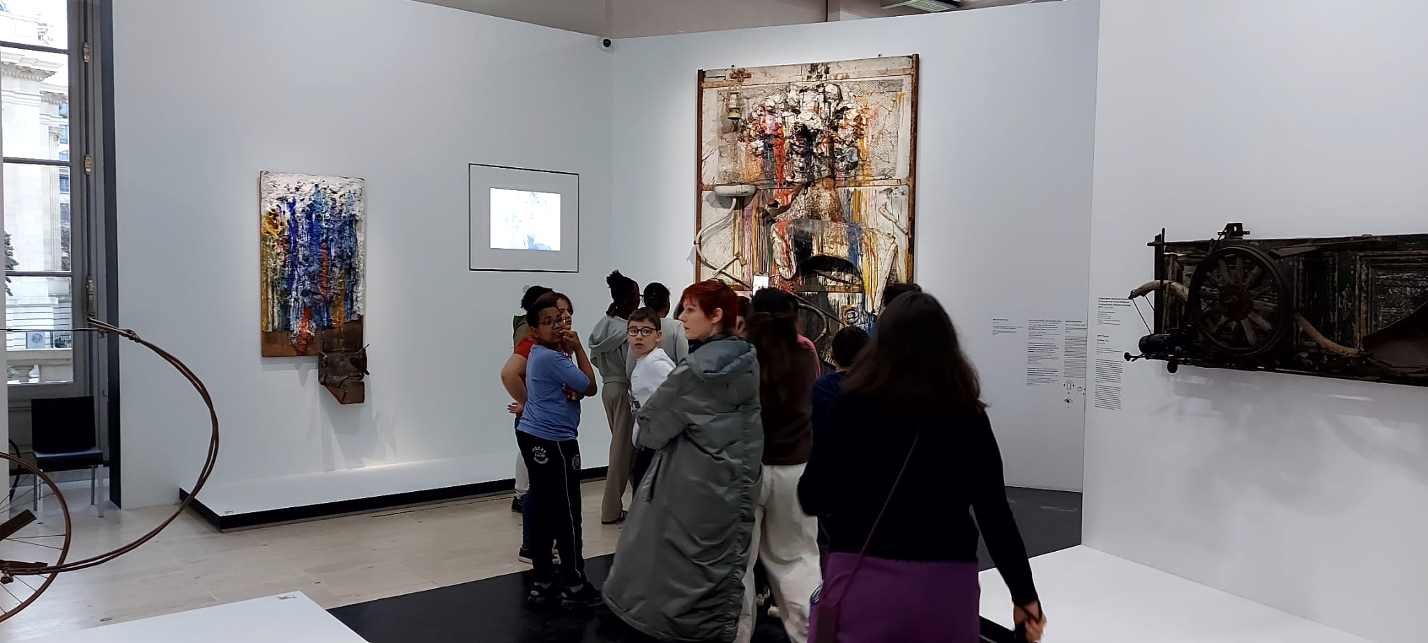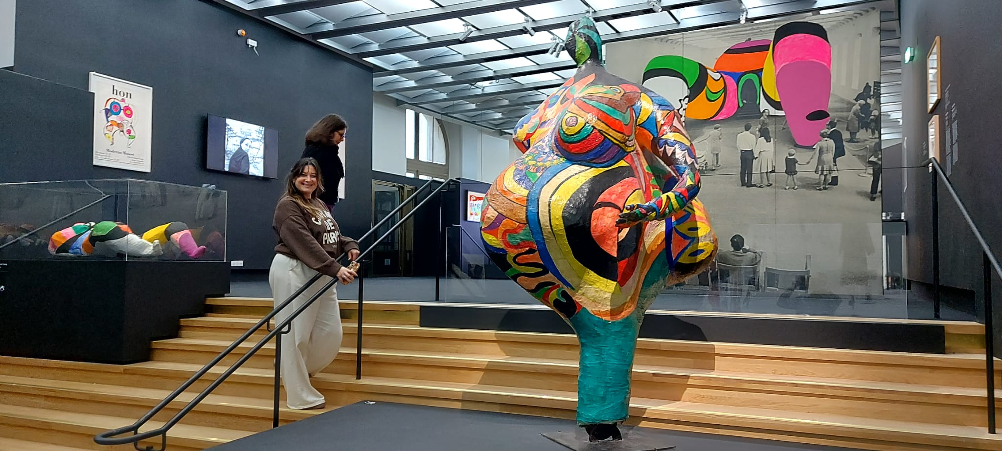 Dès le début de l’après-midi, la visite guidée de l’exposition « Niki de Saint Phalle, Jean Tinguely, Pontus Hulten », accompagnée d’une médiatrice du Grand Palais, a invité les élèves à découvrir une sélection d’œuvres à travers l’émerveillement et l’échange. L’exposition met en lumière un trio d’artistes unis par des projets spectaculaires et un goût certain pour la liberté. Les élèves ont ainsi déambulé parmi les œuvres explosives de Niki de Saint Phalle, où « la peinture jaillit sous l’impact des balles » lors des fameuses performances des « Tirs ».