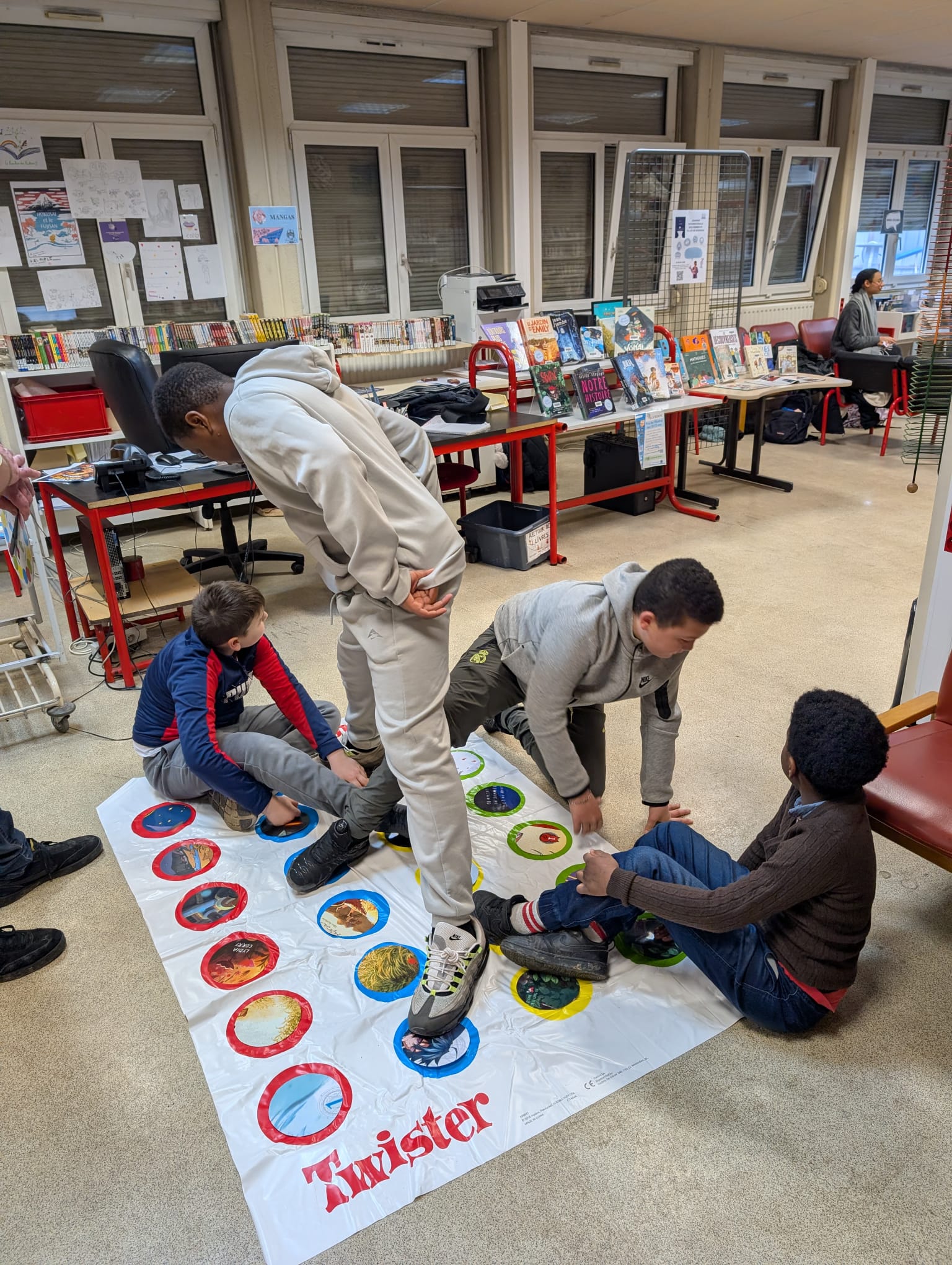 Le 29 janvier, la médiathèque s’est à nouveau déplacée pour proposer une séance de jeux autour des ouvrages du prix : Cherche et trouve, Story Cube, Pictionary, Mime et même Twister ! Cette approche ludique de la lecture a rencontré un vif succès auprès des élèves, ravis de partager un moment à la fois instructif et amusant.